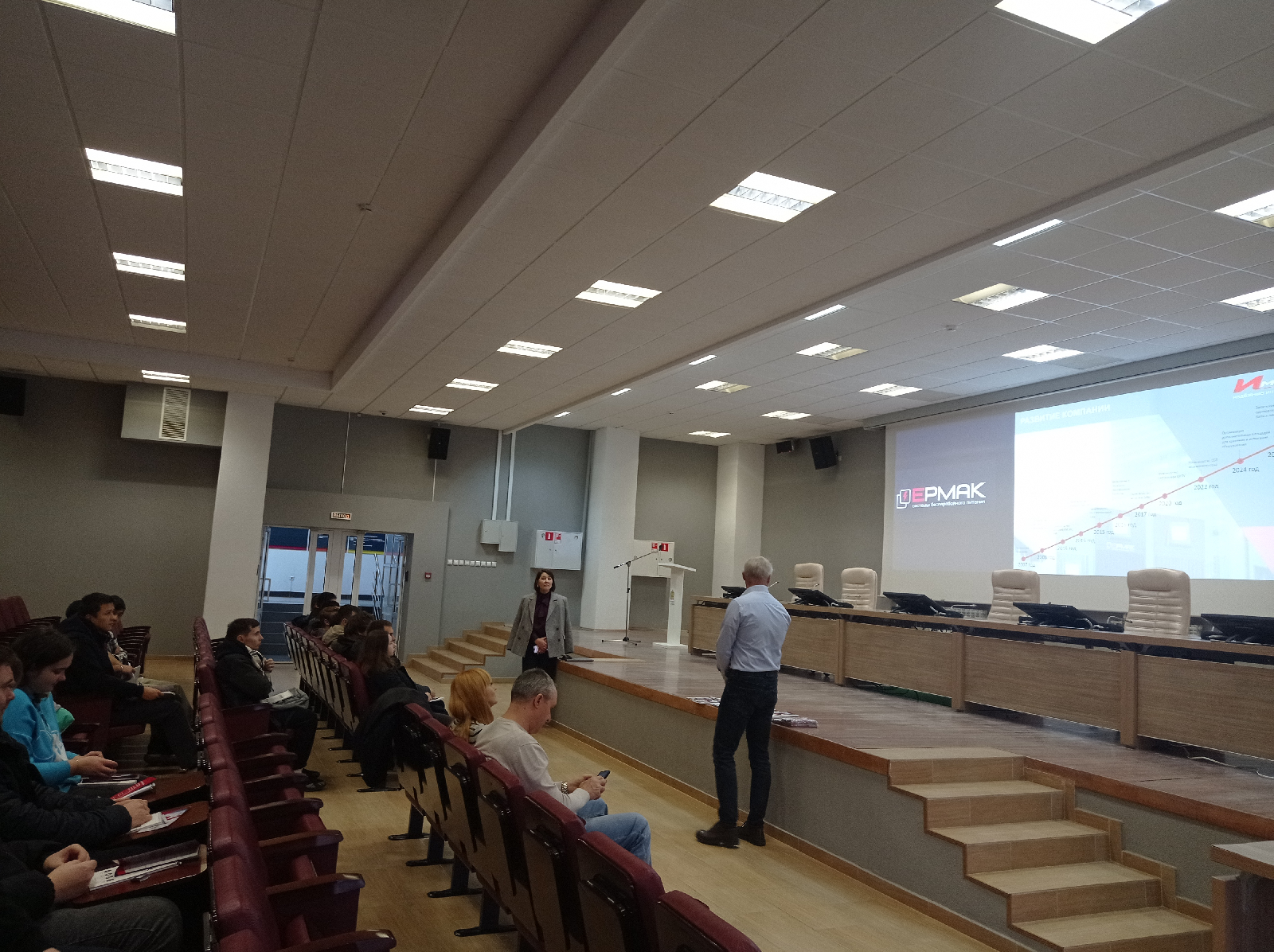 Студентам рассказали об истории становления компании, производстве и основных партнёрах. Завод «Импульс» имеет широкий спектр услуг систем бесперебойного гарантированного электропитания и автономного электроснабжения.